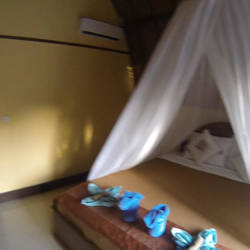 Die Fahrt dauerte nicht mal zehn Minuten und ich hatte meine heutige Tagesreise fast beendet. Als ich ankam sah ich viele kleinere Pferdekutschen an der Anlegestation warten, welche wahrscheinlich auf Touristen mit viel Gepäck warteten. Erstens war meine Unterkunft schnell zu Fuß erreichbar und die Pferde sollen wohl ziemlich schlecht behandelt werden, sodass im Internet davon abgeraten wird, dies in Anspruch zu nehmen. Ich erreichte in kurzer Zeit meine Unterkunft und zur Begrüßung gab es einen Orangensaft. Danach wurde mir mein Bungalow gezeigt. Die Anlage und mein Bungalow sehen schick aus. Ich habe ein riesiges Bett mit einem Moskitonetz und ein riesiges Bad, welches eher spärlich ausgestattet ist. Heute früh um neun Uhr los und nun gegen fünf Uhr abends gelandet. Deswegen legte mich kurz hin, zuvor hatte ich Marc kontaktiert, dass ich jetzt da wäre. Wir wollten uns nochmal treffen und das gleich mit dem Abendbrot verbinden. Ohne Wecker schlief ich ein aber wurde zum Glück rechtzeitig wach. Noch schnell unter die Dusche, da bemerkte ich, dass ich die nächsten Tage kalt duschen muss, was bei der Hitze bestimmt gut tun wird. Wir trafen uns vorne beim Hafen, besprachen wohin es gehen sollte und landeten in ihrer Anlage. Es war ganz lustig Anne Kathrin und Marc wieder zu sehen, zumal viel in der Zeit geschehen war. Sie konnten mir natürlich schon viele Informationen zukommen lassen und ich war somit für meinen Start auf den Gilis besser vorbereitet. Nachdem wir gegessen hatten vergrößerte sich unsere Runde und die Frau meinte, mich bereits zu kennen. Sie und ihr Freund waren im selben Tag im Affenwald von Ubud gewesen und hatten durch Zufall zwei Bilder von mir gemacht, welche sie mir anschließend zeigen konnte. Nur anhand der Fotos konnte sie sich erinnern. Anne Kathrin und Marc kannten die Beiden von einem Tag zuvor und so setzten sie sich mit dazu. Später ging es noch zu dritt zu einer Cocktailbar direkt am Strand. Wir bekamen mit unserer Runde gleich die Rechnung, denn auf Gili Meno schließen die Restaurants und Bars ein wenig eher. Wir ließen den schönen Abend entspannt ausklingen und ich ging anschließend fertig vom Tag ins Bett.Read more