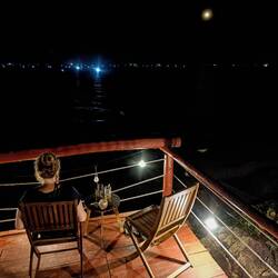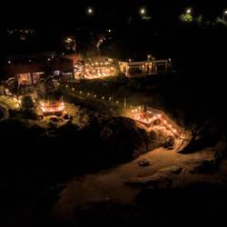 Das Meer wurde ruhiger, das Licht verblasste und das Treiben an der Bar nahm zu. Wir wieder von Salz und Sand befreit, bestellten abermals westliches Essen und vertrieben die Wartezeit mit ein paar runden Billiard und den ein oder anderen Cocktail. Es dauerte ein wenig länger, da die Küche voll für das Family Dinner in Beschlag genommen wurde, was uns aber nicht störte. Nur das die Cocktails ohne Grundlage etwas stärker wirkten. Frisch gestärkt, ließen wir uns die angefangenen Cocktails an der Aussichtsplattform schmecken. Die Drohne war bereits am Tag in der Luft gewesen und ich ließ sie für ein paar Abendaufnahmen abermals in die Höhe steigen. Danach ging es mit unseren letzten Cocktails an den Strand und wir genossen den letzten Abend an diesem schönen Ort. Morgen geht es weiter südwärts nach Saigon oder auch Ho Chi Minh City, wieder in das wuselige Großstadttreiben.もっと詳しく
