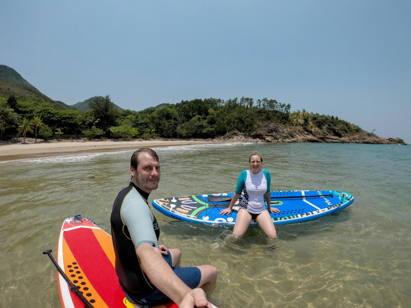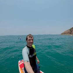 Bereits unser zweiter Tag an diesen schönen Ort, welcher mich stark an ein paar Hostels in Australien erinnert. Das Klima ist eher familiär und nicht so anonym, wie in den meisten Unterkünften. Es gibt viele gemeinsame Aktionen und alle sind aufgeschlossen, um eine gute Zeit zu haben. Wir pellten uns aus unserer Bambushütte, den Biergeschmack vom Vorabend mit Zähneputzen beseitigt, bestellten wir unser Frühstück. Was machen wir heute? Konkrete Pläne? Lesen, Sonnenbaden, Baden, vielleicht etwas schlafen. Aber ein paar Aktivitäten wurden schon in den Tagesablauf mit aufgenommen. So liehen wir uns zwei SUP`s aus und machten uns aufs Meer. Die Wellen, sahen von unten viel kleiner aus, so warf es mich ein ums andere Mal vom Board, aber ich schaffte es durchaus im Stehen voran zu kommen. Caro nutzte die Sitzposition und die gemütliche Variante. Wir erkundeten eine weitere Bucht, welche von weitem sehr schön aussah aber beim näheren Hinschauen ebenfalls etwas vermüllt war. Was auch lustig war, die Boards wurden am Vortag ausgepackt und von einer kleinen Gruppe ausgeliehen. Nachdem sie wieder da waren, fiel mir auf, dass die Finnen fehlten, welche für den Geradeauslauf sorgen. Als ich diesbezüglich für uns nachfragte, wussten keiner damit etwas anzufangen, auch der Besitzer war ratlos. Dieser kam, nach kleiner Suche mit zwei Finnen zurück. Die Gruppe von gestern hatte sich wohl nur im Kreis gedreht. Die Stunde war schnell verflogen und wir anschließend auf den Sonnenliegen verschwunden, wo wir den Nachmittag bis 16Uhr verbrachten.