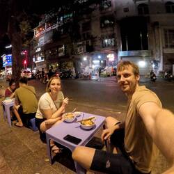 Wir waren wieder in Saigon und liefen eine Runde, denn so wirklich bewegt hatten wir uns heute nicht viel. Eine kleine Kaffeepause legten wir auch noch ein und landeten wieder auf dem Zimmer. Ich nutzte die Zeit und schaute ein spannendes MotoGP Rennen, während Caro sich kurz ausruhte. Zum Abendessen ging es heute auf die Straße, denn Caro hatte einen einheimischen Streetfood-Stand herausgesucht. Der hatte laut Google zwar vor kurzem geschlossen, trotzdem wollten wir unser Glück probieren. Die Tische waren tatsächlich bereits sauber gemacht und weggeräumt aber für uns nochmal auf dem Gehweg hingestellt. Das Essen war sehr lecker, Glasnudeln, mit Fleisch vom Grill und Frühlingsrollen, mit einer leckeren Soße und das mit Getränk für geraden Mal sechs Euro zusammen. Wenn wir in Saigon nochmal weggehen wollten, dann war heute die letzte Gelegenheit, so suchte ich eine Roof Top Bar heraus, auf der wir gemütlich zwei alkoholfreie Cocktails genossen. Der dauernde Alkoholgenuss, war dann gefühlt doch ein wenig viel, sodass wir Saigon alkoholfrei gestalten wollten. Am Abend wollte ich dann noch schreiben aber dabei vielen mir bereits die Augen zu.Read more