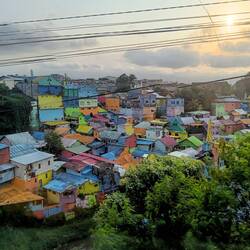 Unter lauten Hupen der Eisenbahn verließen wir Yogyakarta in Richtung Osten. Das an uns vorbeifliegende Stadtbild wich dem Landleben und wir machten mit der Planung weiter und sollten bald eine Lösung für unsere Route gefunden haben. Der Zug wesentlich angenehmer als in Vietnam war klimatisiert und wir hatten genügend Platz. Wir hatten uns allerdings auch für die beste Klasse entschieden. Die vorbeiziehenden Bilder reichten von weiten grünen Reisfeldterrassen, hübschen Dörfern und kleineren Städten. Je näher wir Malang kamen, desto hügeliger wurde die Landschaft, welche nun teilweise in Dschungel mit vielen Palmen und Bambusbäumen überging. In Malang wollten wir auf den Vulkan Bromo. Dafür wollten wir uns ein Motocross Motorrad ausleihen, da es viele sandige Stellen gibt und einen Wasserfall stand ebenfalls auf der Liste. Es gibt zudem ein Rainbow Village, welches wir ebenfalls besuchen wollten. Leider ist unsere Zeit in Malang sehr begrenzt. Wir haben zwar zwei Nächte gebucht aber fahren bereits nach der ersten Nacht spät am Abend weiter. Wir fuhren bereits durch Malang und hielten an einem Bahnhof, jedoch kam keine Durchsage. Aus dem hinteren Wagon stiegen Leute aus, unter anderen welche, die mit uns eingestiegen waren. Etwas unsicher fragte ich zwei andere Reisende, welche eigentlich auch später in Malang raus mussten. Zur Sicherheit öffnete ich die Wagontür und fragte einen von der Bahn und tatsächlich sollte der Zug später nochmal halten. Die Räder fingen wieder an zu drehen und da sahen wir das Rainbow Village in verschiedensten Farben neben der Eisenbahnstrecke von oben strahlen. Wenig später sprangen wir aus dem Zug. In diesem Fall wirklich, denn da war locker ein halber Meter bis zum Bahnsteig und wir hatten die 17 kg auf dem Rücken, plus der kleine Rucksack. Bei den anderen Ausgängen standen kleine Treppen, nur bei uns nicht. Die Hürde gemeistert riefen wir uns einen Grab zu unserer Unterkunft.