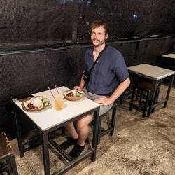 Die Schuhe noch nicht ausgezogen, schnappte ich mir den Basketball, stachelte Caro an und wir spielten ein paar Runden. Wieder ein wenig vollgeschwitzt war es nun doch Zeit für die Dusche und eine kleine Pause. In der Bar, welche ein Freund von der Rollervermietung betrieb, testeten wir einen empfohlenen Drink. Schwarzer Sticky Reis mit Himbeersaft und ein wenig Kondensmilch. War ganz in Ordnung aber nicht mein Favorit und schon gar nicht gesund. Unser Essen bekamen wir in einem lokalen Restaurant gleich nebenan. Ganz einfach bekamen wir Hähnchen mit Reis und ein wenig Salat. Neugierig wurden wir von den Locals beobachtet, welche wahrscheinlich dachten, dass wir uns verlaufen hätten.