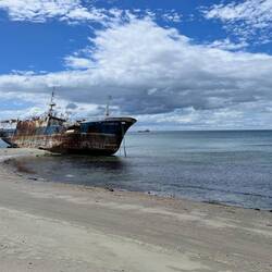 Das dritte Museum lag weiter nördlich und hatte sämtliche Skelette der gesamten Tierwelt um Punta Arenas ausgestellt, so zeigten es die Bilder bei Google Maps. Selbst ein Wal füllte eine größere Halle. Wir hielten an und der Uberfahrer fragte ob wir hier richtig seien. Kurzer Blick in die App, ja, wir, etwas verunsichert standen vor einer großen heruntergekommenen Halle. Wir liefen zum Eingang aber alles zu und kein reinkommen. Ein Nebeneingang war ebenfalls verschlossen und die letzten Rezessionen waren ein Jahr alt. Scheinbar lag es zu weit draußen und wurde geschlossen. Die zweite Niete heute. Dunkle Wolken waren aufgezogen und der Wind hatte stark angezogen aber wir blieben glücklicher Weise verschont. Da hier nichts zu holen war, ging es per Uber wieder in die Stadt.