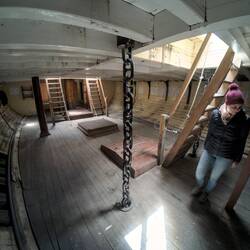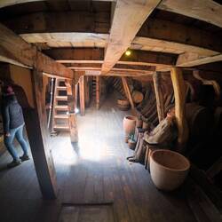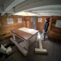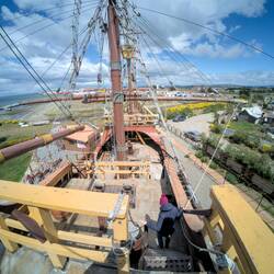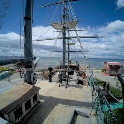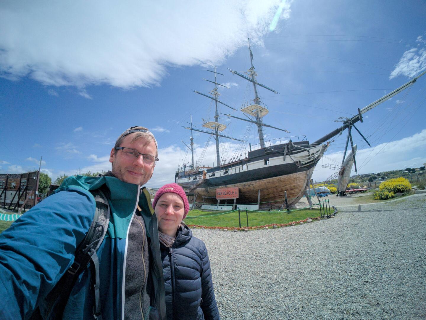 Daher ging es per Uber zum Nächsten, dem Nao Victoria Museum. Hier lernten wir etwas über die Seefahrt und mehrere Schiffsmodelle waren in realer Größe aufgebaut. Verwinkelt und gedrungen waren die Gänge und vermittelten einen Eindruck, wie die Seemänner auf dem Schiff sich bewegten. Allerdings war es für mich immer noch nicht vorstellbar, denn es war alles so eng und kaum Platz für eine zwanzigköpfige Besatzung, geschweige denn mehr. Die beiden größten Schiffe war die HMS Beagle und die Victoria. Die HMS Beagle brachte Charles Darwin auf seiner Reise (1831–1836) zu den Galapagos-Inseln – Beobachtungen, die später die Evolutionstheorie begründeten. Die Victoria schrieb Geschichte als einziges Schiff, das Magellans Weltumsegelung (1519–1522) vollendete und damit erstmals beweist: Die Erde ist rund. Zum Schluss gab es einen kostenlosen Kaffee an der Magellanstraße, denn der war im Ticket enthalten.