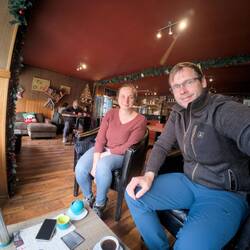Wir waren in die Stadt gelaufen, weil wir zu dem Museum Regional de Magallanes wollten. Kurz davor fiel uns auf, dass wir noch einchecken mussten, leider war das auf Caros Handy nicht mehr möglich, da die eSim abgelaufen war. Daher verschwanden wir in einem kleinen Cafe, wo es mollig warm war. Bei einem Kaffee checkten wir die nächsten drei Flüge ein und wechselten noch die Sim-Karte, denn meine war noch gültig. Danach standen wir vor dem Museum aber eine dicke Kette verriet, dass heute hier keiner aufmachen würde.