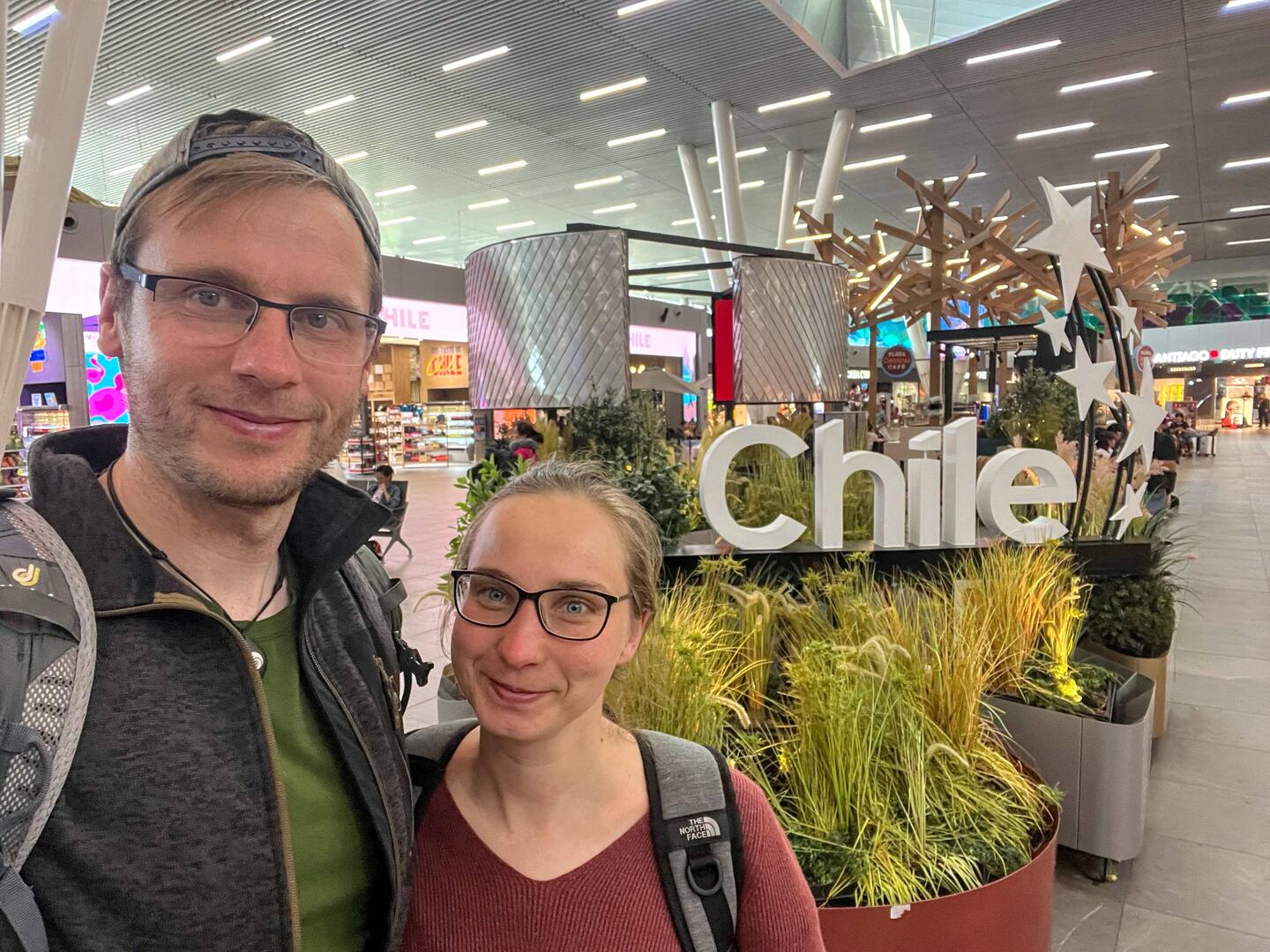 Die Rucksäcke hatten wir wieder und total müde galt es jetzt die Zeit bis 12:30Uhr zu überbrücken. Reden, Handy scrollen, Film schauen, … 1h vor Check In setzten wir uns in ein Cafe und bestellten zwei große Tassen Kaffee, welche uns wieder mehr ins Leben zurückholten. Die Gepäckaufgabe, sowie die Passkontrolle verlief ohne Hindernisse, so stiegen wir ein und verbrachten die nächsten 14h in der Luft. Das Flugzeug, eine alte Boeing, tat ihren Job aber die Multimediaeinheiten reagierten langsam, teilweise gar nicht. Das Filmeschauen funktionierte jedoch und so hangelten wir uns von einen zum nächsten. Zwischendurch mal aufstehen oder ein wenig Schlaf erhaschen war eher schwierig. Der Rückflug war mit Britisch Airways, demzufolge auch das Essen nach englischem Vorbild. Das spanische auf dem Hinflug von Iberia fanden wir besser.