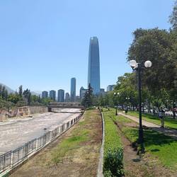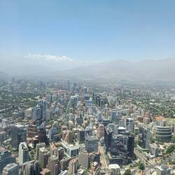 Das kühle Klima lag hinter uns und nun war wieder betonierte Fläche unter unseren Füßen. Ein kleiner Schlenker führte uns durch das Stadtviertel Bellavista, welches bekannt für seine Bars und Restaurants ist. Wir bekamen davon nicht viel mit und folgten anschließend den Fluss Rio Mapocho flussaufwärts. Parallel verlief ein kleiner Grünstreifen, den wir dankend folgten. Das Hochhaus rückte nun immer näher und damit auch das größte Shopping Center in Santiago, wo mein Plan B ein weiteres Entel Geschäft zur Lösung meiner SIM Problematik wartete. Die Mitarbeiterin verstand schon einmal ein wenig Englisch und war schonmal bemühter. Ich sollte mir nun eine Guthabenkarte in einer Apotheke/ Drogerie holen. Wir schlenderten durch das weihnachtlich geschmückte Kaufhaus über 5 Etagen und klapperten ein Laden nach dem Nächsten ab. Keine Guthabenkarte war erhältlich. Also wieder zurück, diesmal bei einem anderen Mitarbeiter, der wollte uns wieder zu den gleichen Läden schicken. Mit der Aussage, dass es dort nichts gab, war nun ein großer Supermarkt das Ziel. Ein wenig hatten wir das Gefühl wie bei Asterix und Obelix mit dem Formular Passierschein A38. Im Supermarkt wurden wir Tatsache fündig, naja,… es gab weitere SIM Karten mit sieben Tage Kontingent an Datenvolumen von Entel aber darunter hing noch eine SIM Karte über 30 Tage mit 50GB von Claro. Uns war es nun auch egal, dann halt eine neue SIM Karte und wieder der Aktivierungsprozess aber ich wäre von dem sieben Tages Zyklus von Entel weg. In einem Claro-Geschäft führten wir die Aktivierung durch und nun „sollte“ die Problematik für den Urlaub gelöst sein. Durch das Hin und Her war mehr als eine Stunde den Bach runtergegangen und wir machten uns nun auf zur Aussichtsplattform. Über einen Fahrstuhl ging es nun in die 61 Etage auf 300m. Das Hochhaus ist das höchste Gebäude Südamerikas und bot eine beeindruckende Übersicht über Santiago aber auch die dahinterliegenden Anden.