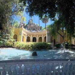 Wir wollten heute hoch hinaus, ein rundum Blick über Santiago erhaschen. Ziel war das Sky Costanera, ein Hochhaus mit 360° Aussichtsplattform aber auf unseren Hin- sowie Rückweg lagen ebenfalls das ein oder andere Ziel. Der Weg aus der Wohnung fühlte sich bereits vertraut an und die Orientierung viel nicht schwer. An dem Park, wo wir zuerst hinwollten, waren wir gestern bereits vorbei gegangen aber da war die Zeit zu knapp. Der Cerro Santa Lucia ist eine Stadtoase und Nationaldenkmal. Am Fuße dieses Hügels wurde 1541 Santiago gegründet. Der Park ist geschmückt mit prachtvollen Brunnen, Statuen und gepflegte Parkanlagen. Kleine schmale Wege führen stetig nach oben bis zu einer Aussichtsplattform, welche einen kleinen Vorgeschmack auf den Sky Deck geben sollte. Im gesamten Park waren Wasserleitungen verlegt, welche permanent die Pflanzen mit Wasser versorgten aber ein kühles Klima erzeugten.