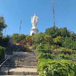 Nach einer kleinen Stärkung und Bargeldbeschaffung, welche durch die hohen Gebühren schon lästig ist. Maximal kann man 200€ abheben und bezahlt dafür circa 8€. Summiert über den Urlaub wird hier auch eine nicht unerhebliche Summe rauskommen. In Santiago wird noch viel mit Karte bezahlt aber die kommenden Regionen werden da eher Bargeld bevorzugen. Der Rückweg führte uns nicht Flussabwärts, sondern über den Cerro San Cristóbal, ein Berg, welcher durch seine zentrale Lage das Stadtbild prägt. Am höchsten Punkt steht eine 22m Statue der Jungfrau Maria, welcher als Pilgerort bekannt ist. Bevor wir uns allerdings an die Höhenmeter machten, durchquerten wir den luxuriösen Stadtteil, geprägt von teuren Stadtvillen, wo die meisten Zäune, Sicherheitssystem und Gitter an den Fenstern installiert hatten. Zu unserer Überraschung purzelten die Höhenmeter schneller als gedacht und die Komoot Wege waren größtenteils auch kein Problem. In dem Park gab es gut asphaltierte Straßen, welche nicht mit dem Auto genutzt werden durften. Stattdessen waren viele Radfahrer zu sehen, ein wenig hatte man das Gefühl, dass es die Trainingsstätte der Gutbetuchten war. Da wir an diesem Tag schon viele schöne Ausblicke genießen durften, blieben wir nur kurz bei der Jungfrau Maria, stärkten uns und traten zeitnah den Rückweg an. Wir mussten schließlich noch einkaufen und die nächsten beiden Tage planen, denn morgen geht es raus aus Santiago und ab in die Anden.Read more