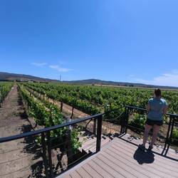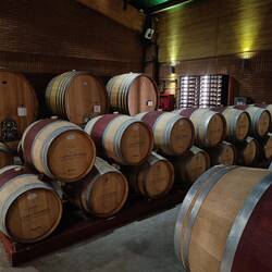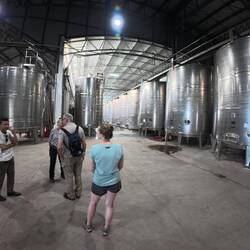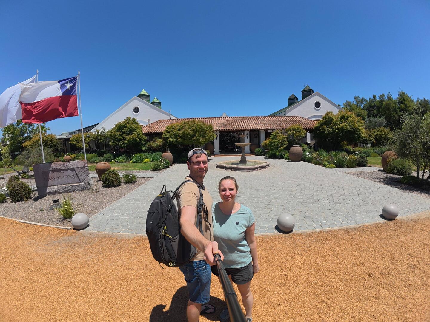Bereits vom letzten Hügel hatten wir in der Ferne die ersten Großplantagen an Weinstöcken gesehen, welche nun links und rechts von uns lagen. Ein Weingut nach dem anderen ließen wir hinter uns, denn wir wollten zum Weingut Vina Casas del Bosque. Dort hatten wir bereits einige gute Rezensionen gelesen und es machte einen guten Eindruck. Die Einfahrt war bereits imposant. Erst mussten wir an einer Schranke halten, ehe uns der Pförtner hereinließ. Danach fuhren wir eine fein hergerichtete Allee entlang, wo wir zum Hauptgebäude, mit vorgelagerten Springbrunnen kamen. Das Auto war rechterhand auf dem Parkplatz abgestellt und wir hatten schnell eine Tour in einer Stunde gebucht. Tscha,… so richtig waren wir aber für so ein Event nicht ausgerüstet. Sehr fein gekleidete Leute in edlem Restaurant und Gartenbereich. Wir ganz normal gekleidet, kurze Hosen, Standard T-Shirt, Flip Flops, Caro in Wanderschuhen. Wir entschieden uns dann für den Außenbereich und nutzten die Zeit für organisatorisches. Unsere Gruppe war nicht groß, zwei Britten, deren Guide und wir. Bei dem Weingut handelt es sich um ein mittleres Unternehmen, im regionalen Vergleich. Im nationalen, eher als kleineres zu zählen. Hauptsächlich werden hier Weißweine angebaut und Rebsorten, welche bei den kühleren Meeresklima gut gedeihen. Durch den Klimawandel werden jetzt schon von großen Weingütern im Süden Gebiete gekauft, welche in den kommenden Jahren die jetzigen ablösen könnten. Zuerst bekamen wir ein paar Erläuterung an der Rebe, bevor wir einen kurzen Eindruck zur Abfüllung und Lagerung bekamen. Abschließend folgte eine Weinverkostung mit zwei Weiß- und zwei Rotweinen. Wir lauschten den Erzählungen von unserem Tourguide aber selbst was einbringen war mit unserem Kenntnisstand schwierig. Die Weine waren lecker aber gingen auch etwas in den Kopf, wir hatten bis dahin nur Frühstück gegessen. Der Tourguide war bereits verschwunden und wir tauschten uns mit den anderen Teilnehmern noch ein wenig aus.