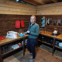 Wir öffneten die Holztür von unserer kleinen Hütte und es war ruhig, nichts zu hören. Waren wir immer noch allein? Wir beschlossen zuerst das Waschprogramm durchzuziehen, ehe wir uns Frühstück machten. Entspannt saßen wir auf unserer kleinen Terrasse und hörten den Wind durch die Tannen wehen und die Vögel zwitschern. Durch die Abgeschiedenheit, war nichts anderes zu hören. Nach dem Frühstück wollte ich ein wenig Sachen am Laptop erledigen, als Caro meinte, wir müssten 11Uhr raus. Ich dann, „Wie spät ist es?“,… „äh, um 11Uhr“. Also schnell unsere Sachen gepackt und ins Auto verfrachtet. Übrigens mussten wir uns heute nicht einschmieren, denn es war komplett bewölkt, was uns und unseren Sonnenbrand ein wenig erfreute.