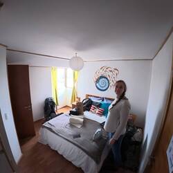Caro ging es über den Tag mit Schnupfen leider immer schlechter, sodass wir nun den Weg zur neuen Unterkunft in Angriff nahmen. Diese erreichten wir gegen viertel sieben. Eduardo, der Besitzer des Hostels begrüßte uns freundlich und mit der Übersetzungsapp konnten wir uns recht schnell austauschen. Die Rucksäcke waren verstaut und unser erster Sonnenbrand (leider) behandelt, fanden wir uns auf der Terrasse ein und genossen den Ausblick. Das Hostel hat einen sehr einfachen Standard, aber Eduardo und auch wie das Hostel gestaltet ist, verschaffen dem Ort eine urige Seele und man fühlt sich super wohl. Wir sind derzeit die einzigen beiden Gäste und bekamen für einen schmalen Taler ein leckeres Abendbrot zubereitet.Read more