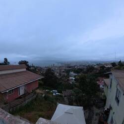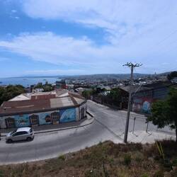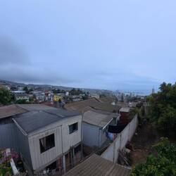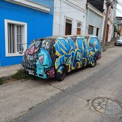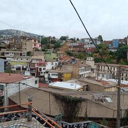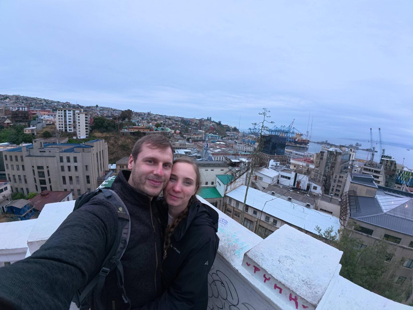 Um die Strecke nicht nur Stumpf nach oben zu fahren, nutzen wir eine kleinere Straße, die hin und wieder ans Meer führt. Wir erhaschten schöne Ausblicke aber gelohnt hatte es sich so mittel, weswegen wir 14Uhr bereits bei unserer neuen Unterkunft aufschlugen. Außerdem regnete es immer wieder zwischendurch. Um zur Unterkunft zu gelangen, ging es in dichten Stadtverkehr, irgendwie waren wir beide von einer kleinen süßen Hafenstadt ausgegangen aber weit gefehlt. Die Unterkunft hatte mir vorher noch geschrieben eine Straße für die Anfahrt zu meiden aber ich hatte nicht nochmal nachgeschaut. Folglich trafen wir genau auf die. Eine steile Straße, welche sich über mehrere Kurven schlängelte, aber wirklich steil ist. Ich wollte diese gerade in Angriff nehmen, da sprang eine Frau auf die Straße und zeigte mir die rote Seite ihres Schilds. Eine lebende Ampel, weil die Straße eng und steil war. So konnte ich erst nach den von oben kommenden Autos nach oben fahren. Erster Gang und genau in der Kurve rutschten mir die Vorderräder weg, welche sich zum Glück wieder fingen und wir uns weiter nach oben kämpften. Alle Autos sind hier so geparkt, dass als zusätzliche Sicherheitsmaßnahme, die Vorderräder zum Bordstein eingeschlagen sind, um ein Wegrollen zu verhindern. Wir sind mal wieder in einem Hostel, mit einer chaotischen Geschichte der Eigentümer. Die Mutter von unserem Gastgeber (geboren in Venezuela), kann ganz gut deutsch sprechen und hat auch eine Schwester in Deutschland. Ihre Mutter kommt wohl aus dem Schwarzwald, wobei es bedingt durch den zweiten Weltkrieg verschiedene Herkunftsländer gab. So fand sie auch mal Tschechien und Österreich heraus. Valparaiso ist eine multikulturelle Stadt, nach dem Goldrausch sind viele hiergeblieben, welche nicht mehr zurückwollten, weshalb man hier verschiedenste Baustile findet. Was man hier auch findet, sind bunte Graffitis und das überall, selbst der Gehweg oder ein Rohr was an der Seite rausschaut, nichts ist vor den kreativen Köpfen sicher. Was auch nicht sicher ist, ist die Stadt selbst. Unsere Gastgeberin, zeigte uns relativ sichere Bereiche und mahnte mehrmals zur Vorsicht und wir sollten nichts Wichtiges mitnehmen. Am Tag sind viele Taschendiebe unterwegs und in gewissen Stadtteilen kann es auch unbequem werden, besonders wenn die Stadt den Abend zu geht.