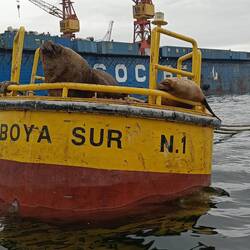 Die Rucksäcke waren im Zimmer, das Auto stand sicher und wir, mit dem Nötigsten und wertvollen Tipps bewaffnet, machten uns auf zur Stadterkundung. Zuerst ging es nach oben, um einen Überblick zu bekommen, was aber immer wieder nur Ausschnitte sein konnten. Man sah, die bunten Graffitis überall aber auch den Kontrast zwischen Arm und Reich, manchmal Slum ähnlich. So viele Eindrücke, leider auch öfter durch die Nase, eher die unschönen Gerüche der Stadt. Wir klapperten unsere Ziele nach und nach ab, kleinere Treppenpassagen hielten als Kunstsammlung her und waren besonders gefragt. Wir verirrten uns nach einer Zeit in eine kleine Gasse, keine dunkle, dreckige, sondern schön dekoriert. Die Treppe selbst waren die Sitzplätze von einem kleinen Café, wo wir einen Milchshake schlürften. Danach machten wir uns auf zum Hafen. Auf dem Weg sahen wir noch den Big Ben von Valparaiso und schon sahen wir uns im Boot zur Hafenrundfahrt wieder. Vor Anker lag gerade ein riesengroßer Frachter, welcher beladen wurde. Weiter fuhren wir an ein paar Marineschiffen vorbei, ehe wir ein paar Seelöwen auf einer Boje sahen, welche als Touristenhighlight herhielten. Anschließend traten wir wieder den Rückweg an, wo wir kurz vor Ankunft noch ein kleines Fest in einem Park lauschten. Dort heizte eine Band die Masse ein, welche fröhlich mitmachten.