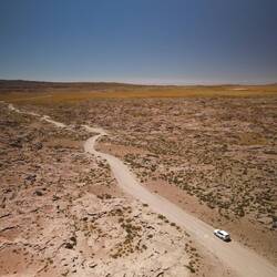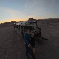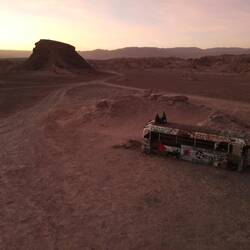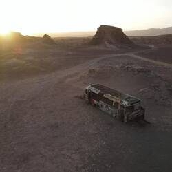 Um den Tag nicht ganz verstreichen zu lassen, präparierten wir uns für nahe Ziele in der Umgebung. Eine Gesteinsformation, welche wie eine Mondlandschaft aussieht, war das erste Ziel aber leider ist das bereits ein Park geworden, der Eintritt kostete und keine Leute mehr hereinließ (da, zu spät). Also ging es zu einem zweiten Ziel namens Magical Bus. Eine Karosserie eines alten Buses, inmitten der surrealen Landschaft. Wir bogen von der Hauptstraße ab und folgten einer Offroadstraße. Die Markierung war bereits erreicht aber kein Bus zu sehen, also fuhren wir weiter. Zwei kleinere Touristenbusse kamen uns entgegen aber wir kamen auch an drei Schildern vorbei, worauf stand, dass die Weiterfahrt verboten sei. Haben wir natürlich nicht gesehen, ich musste ja auf die Straße, Steine und Schlaglöcher achten. Ich war schon kurz davor das Unterfangen abzubrechen, da trotz langer Wegstrecke nichts zu sehen war. Dann trafen wir jedoch eine Bikertruppe und nach kurzer Abstimmung folgte ich denen weiter und siehe da, wir waren am Ziel. Sämtliche Touristenbusse waren bereits verschwunden, nur vier Autos und die Motorräder waren da. Wir machten unsere Bilder und staunten über die Umgebung, verloren die Zeit ein wenig aus den Augen und waren die Letzten, welche die Heimreise antraten. Das Problem, es hatte bereits angefangen zu dämmern und der Rückweg sah plötzlich ganz anders aus. An einer Abzweigung wussten wir nicht mehr weiter und da erschien die Autotruppe, welche sich wohl auch schon verfahren hatte. Wir schlossen uns dehnen an aber die gewählt Strecke passte nicht, worauf wir wieder umdrehten und die richtige Strecke fanden. Etwas später sahen wir die Kolonne wieder, also wäre das auch ein Weg gewesen. Irgendwann kamen wir auf der Hauptstraße wieder an und waren froh nicht bis morgen früh warten zu müssen.