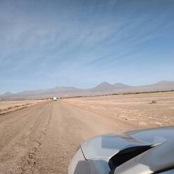 Die Fahrt von Calama nach San Petro de Atacama ist sehr einfach, eine Straße führt so gut wie gerade 100km in die gleiche Richtung. Aber die Landschaft war bereits surreal. Sehr große Distanzen, welche kaum fassbar waren mit unterschiedlichen Gebilden von Hügeln und Bergen im Hintergrund. Während der Fahrt konnten wir uns mit dem Pärchen ein wenig austauschen, denn sie hatten die Atacama Wüste bereits erkundet. Sie erzählten auch von einem stornierten Flug nach Calama aber bei einer anderen Fluggesellschaft, was uns ein wenig, für die kommenden Flüge Sorgen bereitet. Ansonsten gaben Sie uns aber auch wertvolle Tipps, Highlights, welche Caro dankbar notierte.