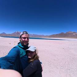 Die Flüge waren relativ schnell. In La Serena landeten wir nach einer dreiviertel Stunde, eine Küstenstadt welche von einem Hügelmeer zum Landesinneren umgeben ist. Wir blieben im Flieger sitzen und wenig später hoben wir nach Calama ab. Währenddessen erlosch das Tageslicht, erst färbte sich die Landschaft rot ein, ehe die schwarze Nacht einzog hielt. Am Flughafen konnte wir trotz Bedenken unsere großen Rucksäcke abholen und bekamen gleich einen Uber zum nahegelegenen Hotel. Der Flug mit der Airline war chaotisch aber schön, da es doch noch heute geklappt hat und wir waren eine Stunde eher als gedacht da. Nach einem kleinen Snack im Restaurant und einem Willkommensgetränk machten wir uns schließlich nach dem chaotischen Tag, auf ins Bett.Read more