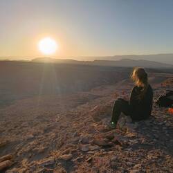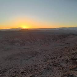 Es war bereits gegen 15:30 Uhr und wir hatten ein letztes Ziel, das Valle de la Luna. Letzter Einlass war 17Uhr und wir schafften es 16:40Uhr da zu sein. Am Eingang bekamen wir jedoch die Information, dass wir vermutlich nicht alles sehen werden, denn 18:30Uhr werden hier alle rausgekehrt. Wir fuhren mit dem Auto durch die Gesteinsformationen, welche abstrakte Gebilde schufen. Es sah wirklich wie eine Mondlandschaft aus, schroffe spitze Felsen, dunkle Dünen erschufen eine lebensunfreundliche Kulisse. Insgesamt gibt es circa sechs Parkplätze an denen man kleine Wanderungen oder die Aussicht genießen kann. Wir entschieden uns für eine größere und eine kleine Wanderung. Aufgrund der Uhrzeit waren wir hier fast allein unterwegs. Im Park selbst gab es auch eine Art Halbbogen, welcher sich nach oben etwas verjüngte. Wenn man leise war, konnte man hier das Knacken der Felsen hören. Bis zum Sonnenuntergang war es nun nicht mehr lang und wir erledigten noch paar Pflichtsachen, ehe wir uns nah der Schnellstraße einen Hügel für den ersten Sonnenuntergang in diesem Urlaub sicherten. Mit einem Eis bewaffnet, beobachteten wir, wie sich der Tag dem Ende näherte. Caro konnte leider den Moment nicht so genießen, denn die Erkältung kam leider wieder zurück, so machten wir uns dann zeitnah auf zur Unterkunft.Read more