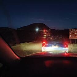 Wir hatten ein gutes Timing, nur ein Tourbus fuhr vor uns und wir konnten uns an diesem orientieren. In völliger Dunkelheit ist es nicht schlecht, wenn einer vorausfährt, der die schlechten Straßenabschnitte kennt. Die Anfahrt hatte es auch in sich, es waren circa 80km aber etwas länger als anderthalb Stunden zu fahren. Manchmal war die Straße gut und man konnte Meter machen, hin und wieder ein größeres Schlagloch aber der Zeitfresser waren das Kurvengeschlängel und die Offroadpassagen mit starken Spurrillen. Durch die Dunkelheit sah ich auch nicht alles schnell genug. Was der Mietwagen die letzten Tage geschont wurde, bekam er nun doch zu spüren.