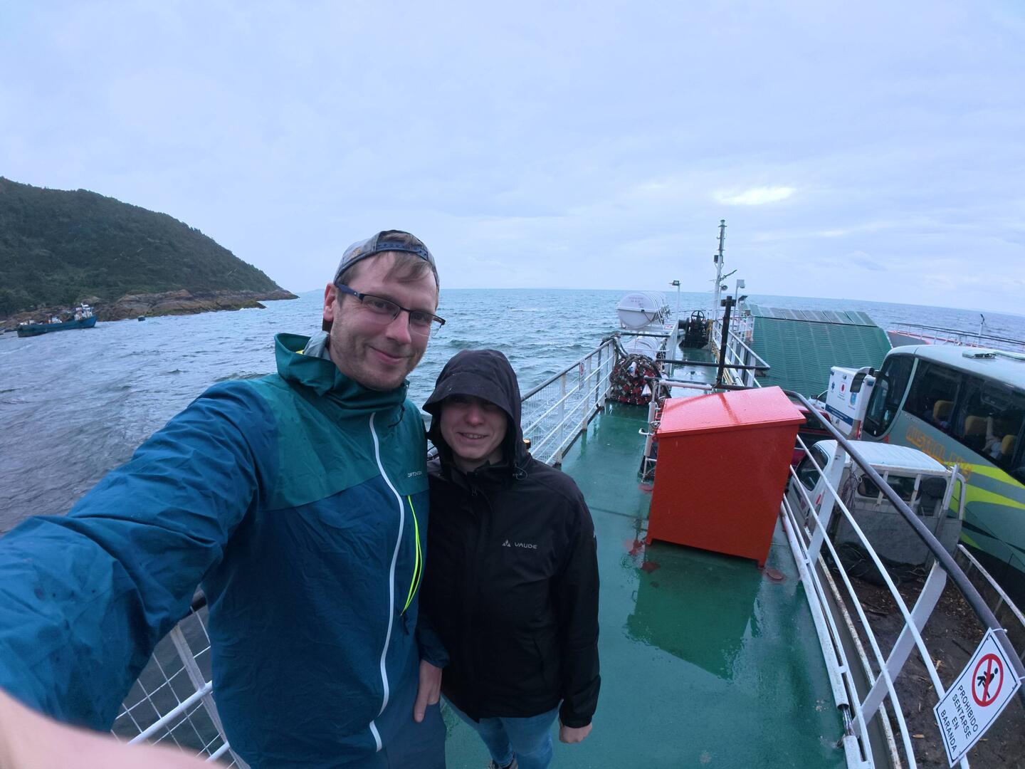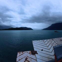 Auf der Fähre realisierten wir, wie lange wir noch unterwegs sein werden. Wir hatten es sicherlich schon einmal gewusst aber es war in diesem Moment nicht so wichtig. Vier Stunden dauert die Überfahrt, welche bei schönem Wetter sicherlich eine Augenweite ist. Wir fingen hingegen an zu frieren, weswegen wir uns an Board zwei Nudelsuppen organisierten. Mit etwas Warmen im Baum war es schon erträglicher. Durch die Fenster konnten wir die Landschaft an uns vorbeiziehen sehen, manchmal trieb es mich auch kurz nach draußen. Es war nun kurz vor 22Uhr und alle gingen zu ihren Fahrzeugen zurück. Ehe wir uns ein Schlafplatz suchen konnten, mussten wir nochmal 25min. mit dem Auto zur nächsten Fähre fahren. In völliger Dunkelheit fuhren wir in Kolonne über die asphaltierte Straße aber die war immer wieder mit tiefen Schlaglöchern gespickt. Ein paar Mal polterte es schon heftig, so war es nicht verwunderlich, dass auch andere Fahrer die Reifen auf der nächsten Fähre checkten. Die zweite Fähre war auch geschafft und nun ging es darum einen Schlafplatz zu finden. Gleich nach der Fähre wäre eine Möglichkeit aber ohne Toilette gewesen, weswegen wir ein ganzes Stück weiterfuhren. Alle anderen Autos hatten wir vorbeigelassen und nun waren wir allein auf der Carretera Austral unterwegs, welche sich inzwischen in eine Offroadstraße verwandelt hatte. Es ging hoch und runter und der dichte Regenwald ragte auf die Straße. Handynetz gab es schon eine Weile nicht mehr und so ging es langsam Kilometer, um Kilometer voran. Wir erreichten schließlich den von Caro ausgesuchten Stellplatz, welcher Wasser und Toiletten hatte. Neben uns stand nur ein weiteres Fahrzeug. Nachdem wir uns kurz im Auto organisieren mussten, konnten wir die Augen um circa ein Uhr schließen.Read more