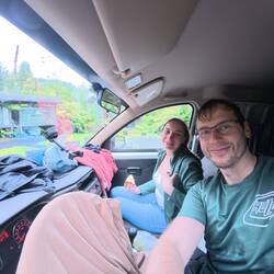 Am Auto wieder angekommen, waren wir froh wieder trockene Sachen anziehen zu können. Was nun mit den Nassen? Diese legten wir nacheinander auf das Armaturenbrett über die Lüftung. Mit geringer Geschwindigkeit und maximaler Lüftung auf Heiß dauerte es circa eine Stunde, bis alles wieder trocken war, fast alles, außer die Schuhe.