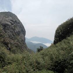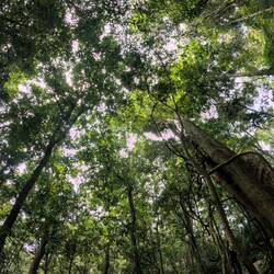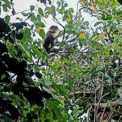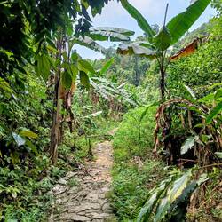 Mit dem Ticket in der Tasche und der Erlaubnis mit der Drohne fliegen zu gehen, schmissen wir wieder den Roller an. In den National Park führt eine Straße circa 18km hinein. Ausgehend von dieser gib es immer kleine Wanderungen, sei es zu Höhlen, besonderen Bäumen oder Aussichtspunkten. Wir entschieden uns bis zum Zentrum zu fahren, da es da die meisten zusammenhängenden Wanderwege gab. Am Eingang wurden wir gleich von einem weißen Spektakel begrüßt und ich spreche diesmal nicht vom Nebel. Im jetzigen Zeitraum schlüpfen tausende von Schmetterlingen und bildeten regelrechte Wolken. Als wir die Straße entlangfuhren, flogen diese wie an einer Schnur aufgezogen an uns vorbei. Die Fahrt durch dichten Dschungel wollte nicht so recht enden und die Größe mancher Pflanzen entlang des Weges war gigantisch. Der Roller stand, die Helme verstaut und auf ging es zur ersten Runde. Diese startete ganz gemächlich mit einem leichten Anstieg, aber die hohe Luftfeuchtigkeit ließ uns schon im Stehen schwitzen. So richtig gut fühlte ich mich allerdings nicht. Niesen, leichter Schnupfen, ein wenig matt. War es eine allergische Reaktion oder doch bei Caro angesteckt. Während Caro links und rechts des Weges aufmerksam schaute, stapfte ich Schritt für Schritt voran. Kleine bis große Spinnen fand man ohne Probleme. Kleine Käfer oder Tausendfüßler waren auch dabei. Man konnte den Weg entspannt entlanglaufen aber über uns schloss der Dschungel die Lücke ohne Probleme. Von der Ausschilderung war der National Park etwas minimalistisch, so waren wir uns nicht immer ganz sicher, wo wir eigentlich waren, zum Glück gab es nicht so viele Kreuzungen. Das erste Highlight war eine Höhle und weil wir vorher bereits gelesen hatten, dass eine Taschenlampe notwendig sei, hatten wir unsere Stirnlampen mit. Das erste Stück am Eingang war sehr glatt, danach ging es in einem größeren Durchgang circa 30 Meter nach Innen. Kurz auf alle viere und mit unseren Stirnlampen nach vorn geleuchtet. Die Fledermäuse hingen von der Decke und flogen teilweise von uns aufgeschreckt umher. Der nächste Abschnitt würde bergauf in einem größeren Zwischenraum führen. Wir entschieden uns jedoch für den Rückweg und den Rundweg weiterzugehen. Recht einsam wanderten wir durch den Dschungel. Große Bäume, mit herabhängenden Lianen, welche circa Faustdick waren säumten unseren Weg. Der Geräuschpegel war manchmal so laut, dass du deine Stimme erheben musstest um sich zu verständigen. Nach der ersten Runde waren wir beide etwas platt. Mir ging es ja sowieso nicht ganz so und Caro war auch nicht zu 100% fit. Damit entschieden wir es bei der einen Runde zu belassen, was glaube auch drei Stunden waren. Wir stärkten uns, bevor wir die Rückfahrt antraten. Die Drohne ließ ich auch nochmal steigen. Ich war gar nicht so weit weg, aber unmittelbar nach dem Videosignal, kam die Meldung Fluggerät nicht verbunden. Kaum hatte ich wieder Kontakt, reduzierte ich lieber die Distanz ein wenig. Als ich gerade zum Landeanflug ansetzte, hörten wir mehrere Affengeräusche, welche ich vermutlich aufgeschreckt hatte. Gesehen haben wir allerdings keinen.