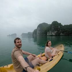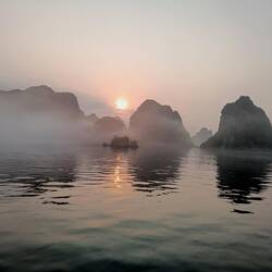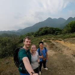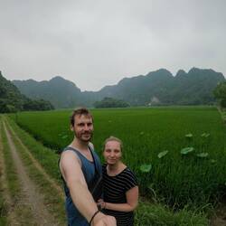 Die Zeit schritt voran aber der Abend sollte nicht zu Ende sein. Der eigentliche Plan war, ab in die Unterkunft, Bericht schreiben und schlafen gehen, da morgen der längste Tag werden sollte. Jetzt ist es kurz vor eins und ich schreib noch Bericht. Der erste Punkt, welcher den Plan zunichtemachte, war eine Party auf dem Marktplatz, welche wir uns belustigt anschauten. Dort stehen geblieben, genossen wir den Moment und holten uns noch ein Getränk. Das Zweite war eine vietnamesische Reisegruppe mit gutem Pegel. Wir hatten uns in die Lobby gesetzt, um den letzten Bericht hochzuladen und den neuen zu schreiben. Erst ging die Gruppe vorbei aber kam dann gleich wieder zu uns. Erst waren es zwei Männer, welche kein Englisch konnten, also ging es mit Google Translate weiter. Anschließend gesellten sich noch zwei weitere Männer und eine Frau dazu. Diese konnte ein wenig mehr Englisch sprechen und fortan ging die Hauptkommunikation über sie. Die Vietnamesen waren sehr freundlich und haben sich nur positiv über uns und Deutschland geäußert, was wir über Vietnam erwiderten. Sie waren aus einem Ort nördlich von Hanoi, haben vor einem Jahr das Studium als Lehrer abgeschlossen und waren als Studiengruppe für ein Wochenende in den Norden gefahren. Nach einer Weile konnte ich mich an den Bericht setzen und Caro recherchierte noch ein wenig. Plötzlich vernahmen wir ein Geräusch und als ich nachschaute, sah ich den Besitzer mit seiner Frau hinter der Theke auf einer Matratze liegen. Also packten wir schnell unsere Sachen, verschwanden im Zimmer, damit die beiden schlafen konnten.Baca selengkapnya