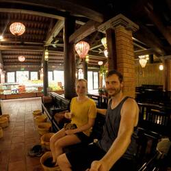 Unsere nächste Unterkunft ist ein wenig außerhalb, daher schnell Geld abgehoben und als Multimillionäre nach Hause (Umrechnung 1€ = 25.000VND). Zum Abend ging es in ein Seafood Restaurant. Dieses stand auf Bambusstelzen in einem kleinen Teich, erstrahlte durch die vielen Lichter über der Wasseroberfläche. Zum Essen gab es ein Seafood Hotpot, darin waren Fisch, Oktopus und Shrimps, in einer leckeren Brühe. Einen Morning Glory Salat, was auch als Wasserspinat bezeichnet wird und einen Teller voll Austern. Klingt viel aber so kugelrund hatten wir uns zum Glück nicht gefühlt. Das Essen und die Getränke mit rund 18€ war für uns gut investiert und so ging es wieder über die Reisfelder ein letztes Mal zur Unterkunft. Das Packen verschoben wir auf den Morgen und so ließen wir den Abend entspannt ausklingen.Baca selengkapnya