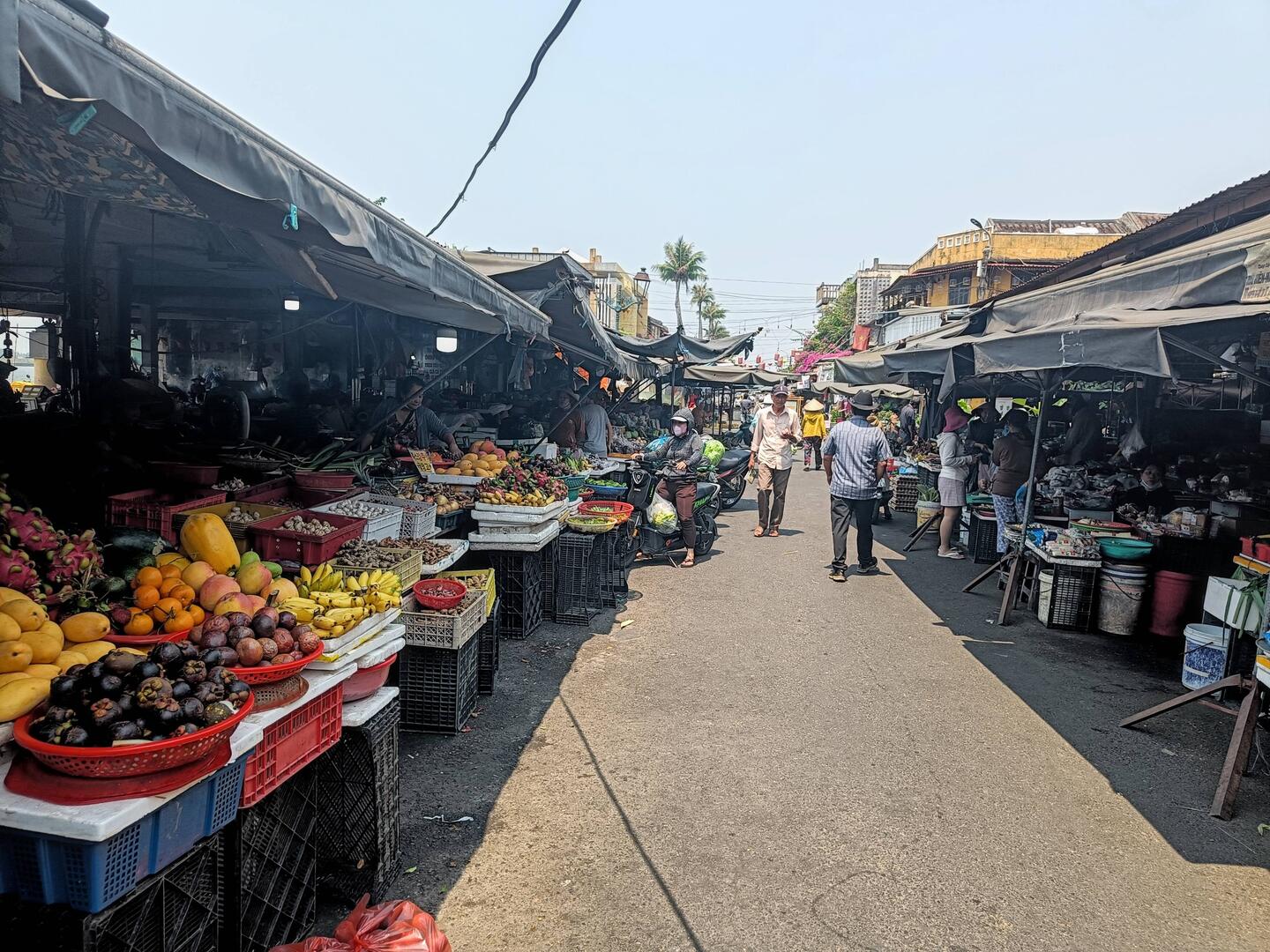 Die Fahrt dauerte circa 50 Minuten und die Stecke war nicht der rede Wert. Bauruinen, trockene Landschaften und kleinere Ortschaften wechselten sich ab. Da Nang dagegen begrüßte uns mit einer Skyline, welche wir beide so nicht erwartet hatten. Auf den Straßen herrschte hektisches Treiben, durch das wir uns bis zur Markthalle durchkämpften. Dort angekommen fühlten wir uns sehr an Hoi An erinnert (nur größer), sodass wir schnell wieder draußen waren.