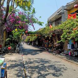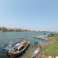 Wir fuhren in das Zentrum von Hoi An, wo eigentlich Auto- und Motorradverbot ist, eigentlich… Wir stellten die Fahrräder ab und wurden gleich begrüßt mit Free Parking aber der Hintergedanke war natürlich eine Bootsfahrt aufzuschwatzen. Schnell noch Wasser organisiert und schon standen wir zwischen den ganzen Marktständen. Weit gekommen waren wir zugegebener Maßen nicht und ich war bereits ein T-Shirt reicher. Ein dünnes blaues Leinenshirt für einen schmalen Taler. Auf dem Markt wurde jedoch alles angeboten, von Sachen, Souvenirs und Lebensmitteln. Nachdem Caro ebenfalls fündig geworden war, schlenderten wir die Uferpromenade entlang, wo sich ein Schneiderladen an den Nächsten reihte. Die verschiedenen Stoffe fein säuberlich aufgereiht und diverse Anzüge und Kleider in Szene gesetzt. Wir nahmen die erste Brücke über einen schmalen Kanal, welcher in der Nacht zum Leben erweckt werden soll. Die andere Seite war verschlafen und so schlenderten wir einmal Ufer ringsherum. Am Eingang eines Resorts sah es sehr schön aus und wir wollte uns nur die Parkanlage anschauen, wurden jedoch gleich von dem Wachmann abgefangen. Kurz mit der Frau an der Rezeption gesprochen und schon durften wir einen kleinen Spaziergang machen. Es war eine sehr gepflegte Anlage mit Strandmuscheln mit Liegeflächen, einen Poolanlage, durch Pflanzen abgetrennt, eine Bar in der Mitte und Grünflächen. Hier konnte man es schon aushalten. Wir liefen zu einem kleinen Steg und da sah es plötzlich nicht mehr so schön aus. Haufen Müll, welches der Fluss angespült hatte, trübte ein wenig das Bild. Wieder von der Insel herunter und auf die nächste drauf. So war der Plan aber über die zweite Brücke kamen wir leider nicht, da es sich wieder um einen große Hotelanlage handeln sollte. Die nächste Brücke war noch im Bau, also hieß es die gesamte Strecke zurück. Kaum bei den Fahrrädern angekommen, holte ich mir abermals zwei Shirts, bei sieben Euro, 100% Baumwolle und guter Qualität kann man nicht viel verkehrt machen. Mit unserer Shoppinglaune sollte es aber noch nicht zu Ende sein. Meine Flip-Flops waren auf dem Lan Ha Bucht Trip kaputt gegangen. Seitdem versuche ich immer mal wieder welche zu bekommen aber die größte Schuhgröße ist hier meistens die 42 und ich brauche die 45. Wenn ich die Schuhgröße einem Händler mitteile, kommt immer erstmal ein „oh“ und das Gesuche beginnt und endet mit einer zu kleinen Größe, die ich aber auf jeden Fall probieren soll. Auf unseren Rundweg habe ich mir sehr einfache holen können, welche aber von einer sehr schlechten Qualität waren. Wir landeten in einem Markthaus, die Gänge kaum breiter, dass sich zwei Personen aneinander vorbei bewegen können. Die Waren zu Haufen aufgetürmt und die Ventilatoren liefen überall. In der zweiten Etage war die Schuhetage, während Caro günstig ein paar Nike Halbschuhe gekauft hatte, verzweifelten die Ladenbesitzer an mir und meiner Schuhgröße. Beim letzten Stand wollte ich bereits gehen und die Flip-Flops ausschlagen. Die Besitzerin ließ jedoch nicht locker, erst senkte sie den Preis ein paar Mal und wo sie nicht mehr tiefer gehen konnte, schnappte sie sich meine alten Schuhe, packte sie in einem Beutel, drückte mir diesen in die Hand. Es waren nun mehr etwa fünf Euro, welche ich bezahlen musste. Mit dem Fahrrad steuerten wir noch ein schönes Restaurant am Fluss an, und genossen die Zeit. Währenddessen brachte ein Fischer seine Reusen aus und wir brachen bald zur Unterkunft auf. Der Plan, kurz ausruhen und zum Abend Hoi An auf ein Neues erkunden.