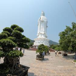 Da Nang liegt mitten am Meer und besitzt einen mehreren Kilometer langen und sehr breiten Sandstrand. Dort wollten wir ursprünglich eine kleine Erfrischungspause einlegen, aber auf dem Weg zur Chua Linh Ung Pagode, war kein schöner Platz mehr zu finden. Stattdessen fuhren wir am Hafen, mit unzähligen Fischerbooten vorbei. Am Ende tranken wir was bei einem Yachtclubhaus. Das Gelände der Pagode war ziemlich beeindruckend und ist unter anderen mit einer 70 Meter hohen Buddha Statue geschmückt. Als wir den touristischen Teil des Geländes hinter uns ließen und den Gesängen von Gebeten folgten, kamen wir zu einem Tempel, mit mehreren Menschen, welche ihren Glauben praktizierten. Im Areal vor dem Tempel sahen wir unsere ersten freien Affen, welche sich bereits über ein paar Opfergaben hergemacht hatten. Im weiteren Abschnitt drehte ich in der Luft eine Runde.