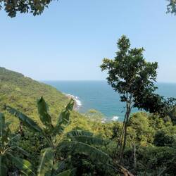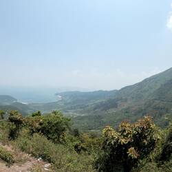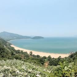 Die Strecke führte uns an einer schönen Küstenstraße entlang, bis zu einem Checkpoint. Da saßen drei ältere Herren und signalisierten, dass es kein Weiterkommen mit dem Roller gäbe. Für eine Wanderung war unseren Wasservorrat leider schon ziemlich aufgebraucht. Die fahrenden Händler, waren ziemlich teuer, sodass wir es in Kauf nahmen die Strecke zurückzufahren. Wir fanden einen Shop, aber dieser wollte für eine große Wasserflasche 30.000VND haben. Üblich sind eigentlich 15.000VND. An meinem Gesicht konnte sie sehen, dass ich damit nicht so zufrieden war. Deshalb tat sie so, als würde sie diese einscannen. Abermals kam die Antwort 30.000 VND. Durch Zufall sah Caro am Nachbarregal das Preisschild, auf welchem 13.000 VND stand. Ein weiteres Mal sollten wir mehr zahlen, als wir eigentlich mussten. Mit dem Wasser und einen kleinen Snack im Gepäck, ging es wieder zum Checkpoint. Dort angekommen, mussten wir feststellen, dass wandern in dem Gebiet wohl nicht erlaubt sei (trotz Beschilderung davor). Jede Diskussion war hoffnungslos und so entschieden wir uns stattdessen einen ziemlich steilen Weg zu einem Strand hinab zu steigen. Zu Beginn war der Weg sehr zugemüllt und ich fragte mich, ob es denn zielführend sein sollte. Der Weg wurde besser, jedenfalls was den Müll betraf. Auf halber Strecke sahen wir unweit von uns einen Affen im Baum sitzen, aber es sollte nicht der einzige bleiben. Unten trafen wir auf eine ganze Affenbande, welche die Jugendgruppen belagerten. Die Hoffnung, in einem unachtsamen Moment etwas von den Essen zu ergattern. Zwei vietnamesische Freundinnen zelebrierten ihr Picknick auf dem nächsten Level. Neben einer schönen Picknickdecke in weiß wurde alles genau platziert und es gab auch zwei kleine reich verzierte Torten. Das Ganze wurde mit Dreibein und Handy dokumentiert. Wir machten es uns am Wasser bequem und beobachteten das Spektakel.