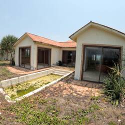Gegen 11 Uhr hatte sich Caros Magen etwas beruhigt und was sollte wir mit den angebrochenen Tag den anfangen? Wir packten unsere Badesachen und machten das, was wir bisher kaum gemacht hatten. Faul am Strand herum liegen. Den Roller gestartet, wollte ich mir das Hafengebiet anschauen, was aber nicht sehenswert und teilweise umzäunt war. Deswegen kehrten wir um und kamen abermals an einem Objekt vorbei, was nahe der Fertigstellung war aber nun in diesen Zustand verfiel. Von der Neugier gepackt, machten wir ein paar Fotos von der Seeseite und waren nun unweit des Hauptgebäudes der Anlage entfernt. Na gut, wir könnten ja mal reingehen. Manche Nebengebäude wurden wohl von Obdachlosen bereits in Beschlag genommen und auch im Hauptgebäude war ein kleiner Tisch mit zwei Tasse und Kerzen aufgestellt. Wir schlichen leise von einer Etage zur nächsten und schauten neugierig durch die Räume. Die Anlage war in erster Lage zum Meer erbaut wurden. Das Nachbargrundstück ein gepflegtes Resort hatte es geschafft und war im vollen Betrieb. Aus dem Hauptgebäude raus, liefen wir durch eine Bungalowsiedlung und konnten selbstgebaute Trainingsgeräte und selbstgelegt Stromleitungen erkennen. In ein paar Bungalows in erster Lage schauten wir durch die Fensterscheiben. Eine freistehende Badewanne direkt am Fenster, eine sehr schöne Dusche und vor dem Bungalow einen eigenen Pool. Das war schon ein gehobener Standard. Ich wollte gerade bei einem anderen Bungalow unter die Lupe nehmen, da kläffte es plötzlich von hinten. Wir nahmen nun fix unsere Beine in die Hand. Ich hatte mich eh schon gefragt, wann wir auf den ersten Hund treffen würden. Der Hund folgte uns zum Glück nicht, so machten wir uns nun auf zum Strand.