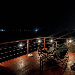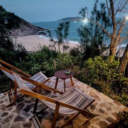 Mit ein Begrüßungsbier bekamen wir unseren Schlüssel überreicht. Unser Bungalow hat eine große Glasfront zum Meer und eine kleine Betonterrasse mit zwei Liegestühlen. Wir schmissen unsere Sachen ab und hatten großen Hunger. Ein wenig mussten wir durchhalten, da gerade das Family Dinner vorbereitet wurde. Das ist eine Aktion von der Unterkunft, um alle zusammen zu bringen und gemeinsam vietnamesisches Essen zu essen. Für das hatten wir uns nicht eingeschrieben, da wir etwas anderes essen wollten. So gab es vorerst nur zwei Cocktails, welche wir mit zum Strand nahmen. Die weitere Wartezeit auf das Essen vertrieben wir uns mit einer Runde Billiard. Mit gefüllten Bäuchen (wir mussten aufgrund unseres großen Hungers noch etwas nachordern, da es außer dem Frühstück bis dahin nichts gegeben hatte) ging es Richtung Strand in die Hängematte. Mit zwei Bier genossen wir den restlichen Abend zu zweit. Leider war es wolkenverhangen, sodass keine Sterne zu sehen waren. Die einzigen Lichter kamen vom Meer und gehörten zu einer Austernfarm. Uns waren bereits die Augen zu gefallen, als wir uns doch aus der Hängematte schälten und schlafen gingen.Baca selengkapnya