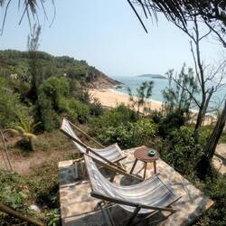 Wir kamen in Quy Nhon an und wurden gleich, wie immer, von einer Horde Taxifahrer begrüßt. Um der Situation zu entfliehen, liefen wir eine Kreuzung weiter und riefen in Ruhe ein Grab, welcher und prompt einsackte. Hindurch durch die Stadt, welche ich um einiges kleiner erwartet hatte, ging es anschließend eine hügelige Küstenstraße entlang. Wir wussten das die nächste Unterkunft abgelegen war, aber hier gab es Tatsache nicht viel. Der Plan für die nächsten beiden Tage war Füße hoch, von daher hatten wir mit Abgelegenheit keine Probleme. Der Name Life`s a Beach war hier Programm :-)