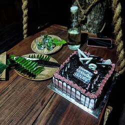 Plötzlich ging das Licht aus und mit leuchteten Kerzen und Geburtstagsgesang kam die Belegschaft aus der Küche. Caro hatte einen Geburtstagskuchen organisiert, welcher jetzt von der gesamten Belegschaft präsentiert wurde. Ich versuchte alle Kerzen auf einmal auszublasen, was vergebens war, denn die Kerzen entfachten sich von alleine selbst. Es war eine tolle Überraschung, was von dem leckeren Abendbrot gekrönt wurde. Heute hatten wir die Variante mit Hühnchen gewählt. Es war so viel und so lecker. Dann kam noch der Kuchen, welchen wir eigentlich nicht mehr schafften aber irgendwie reinbekamen. Zum Anstoßen bekamen wir Arakschnaps, ein sehr gelungener Abend. Wir ließen sicherlich mehr als die Hälfte des Essens stehen, was hoffentlich die Belegschaft aß. Danach dokumentierte ich den restlichen Tag. Ein letztes Mal kalten duschen und ab ins Bett.Read more
