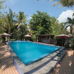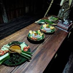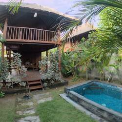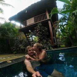 Nach einem kalten Willkommensgetränk konnten wir unsere neue Unterkunft beziehen. Wir haben uns zum Abschluss einen doppelstöckige, mit Stroh gedeckte Holzhütte gegönnt. Diese hatte ihren eigenen kleinen Pool und war durch eine Mauer von anderen Hütten abgetrennt. Unten befand sich eine kleine Sitzgruppe und das Bad. Über eine Treppe gelangte man auf dem Balkon und das Schlafzimmer. Das Bett war riesig und verschiedenste Palmen fungierten als Sichtschutz zu den anderen Hütten. Wir waren etwas fertig, sodass wir uns erstmal ins kühle Schlafzimmer verzogen und uns erst zum Abendbrot wieder erhoben. Wir unternahmen an dem Abend nichts mehr. Das war jedoch kein Problem, denn wir hatten ja fünf volle Tage auf der Insel.Read more