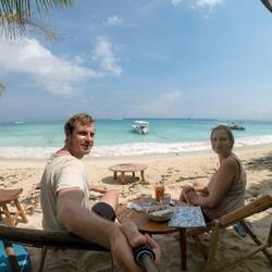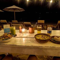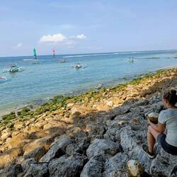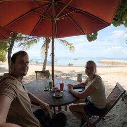 Ein kleines Schläfchen später suchten wir uns ein schönes Restaurant am Wasser. Die Sonne war bereits verschwunden und die Sterne strahlten am Himmel. Eigentlich hatte Caro ihr Buch und ich den Laptop mit und wir wollten nach dem Essen mit einem Getränk am Meer bleiben. Das war nur mit einem Locationwechsel möglich, wir suchten extra eine Bar, welche bis 23 Uhr auf haben sollte. Am Strand stapften wir durch den Sand und die Blicke fielen auf die benachbarten Lichter von Bali. Nur noch zwei Tage, dann geht unser Flieger nach Hause, der erste Wehmut machte sich breit. An der Bar angekommen, konnten wir noch Getränke bestellen aber wurden gleichzeitig auf die letzte Runde hingewiesen, dabei war es erst 22Uhr. Das Gute, wir durften so lange sitzen bleiben wie wir wollten. Nachdem hinter uns bereits alle weg waren, machten auch wir uns auf den Nachhauseweg ins Bett.Read more