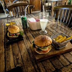 Zurück am Roller, stand dieser wie wir ihn verlassen hatten. Wir kreuzten unsere Finger, dass er anspringen würde. Ich drückte den Starter und er tat sich schwer, weswegen ich schnell das Gas etwas aufdrehte. Ok, er lief erstmal aber das schleifende Geräusch war unter Last immer noch da und war mit einem Leistungsverlust verbunden. Irgendwie schien es sich wieder mit der Zeit zu geben, dass wir problemlos zur Hauptstraße zurückfanden. Auf dem Rückweg nahmen wir eine weitere Wegstrecke in Kauf, um den Roller ein letztes Mal voll zu tanken. An ging er auf jeden Fall wieder. Wir hatten noch ein wenig Zeit weswegen wir oberhalb unserer Unterkunft an ein Café heran fuhren. Zum einen, um in Notfall nach unten rollen zu können, zum anderen, um Geburtstagswünsche abzurufen und organisatorische Dinge wie der Check In für den morgigen Flug zu erledigen. Dabei fiel uns auf, unsere nächste Unterkunft lag nicht auf Nusa Penida, sondern Nusa Lembogan. Alle Fähren schon gebucht und die Unterkunft nicht mehr kostenlos stornierbar, waren wir am Überlegen. Wir entschieden uns schweren Herzens für die Unterkunft und versuchten die Fähren umzubuchen. Wir hatten über Airbnb gebucht und im Namen stand auch Nusa Penida, wodurch wir uns täuschen lassen hatten. Zeitgleich schrieb ich der Vermietungsfirma von unserem Roller, was im Falle, dass der Roller nicht anspringt, passieren würde. Die Antwort war klar, sie würden ihn nicht abholen kommen. Wir aßen einen Snack und später zwei Bananenshakes, bis wir wieder zu unserer Unterkunft aufbrechen wollten. Und als hätten wir es geahnt, sprang der Roller nicht mehr an und wir kontaktierte die Vermietungsfirma. Wir waren allerdings etwas in Zeitnot. Wir mussten packen und 18:30Uhr würde es Abendessen geben. Deswegen rollten wir ohne Motor den Berg hinab und stellten den Roller vor der Einfahrt ab. Ich teilte der Vermietungsfirma mit, wo der Roller stand und das ich in einer dreiviertel Stunde wieder an der Straße bin, da wir in der Unterkunft kein Empfang hatten.
