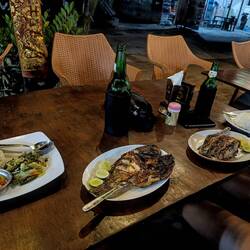 Bevor es dunkel wurde, suchten wir ein paar Meter weiter nach einem Lokal und ließen uns lecker verköstigen. Mit den Füßen im Sand und netter Musik, blickten wir zu den vereinzelten Lichtern von der Nachbarinsel Bali. Auf dem Nachhauseweg organisierten wir uns noch ein Bier, um den Abend entspannt auf dem Balkon ausklingen zu lassen.Read more