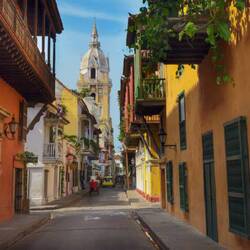Première ville coloniale de Colombie. Très animée de jour comme de nuit.
