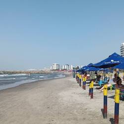 Plage de la ville de Cartagena, du côté touristique avec beaucoup de quartiers animés la nuit.
