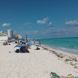 Arrivée au Mexique à Cancun et première plage située dans la zone hôtelière.