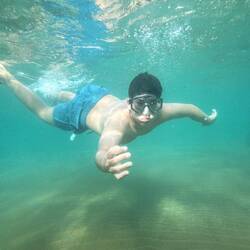 Dafür viel uns was anderes auf als wir den Kopf unter Wasser hatten. Da waren Töne und Geräusche zu hören. Der erste Gedanke war, dass es sich um badende und spielende Kinder am Strand handle. Doch das passte nicht…