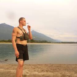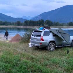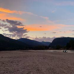 Revelstoke. Gleicher Ort, aber ein anderer „Spot“. Privater, am Ende einer Off Road Straße und mit Sandstrand am Fluss. Der Hammer!