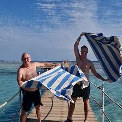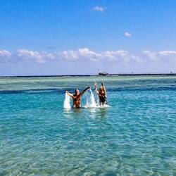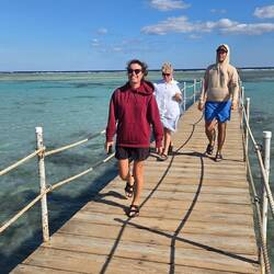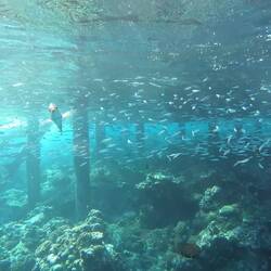 Wieder ein schöner Tag. Mit baden im flachem Wasser. Am Steg draußen ist es unmöglich. Wir sehen aber am Riff