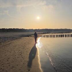 Nach dem Frühstück gehen wir an den Strand und bei Super Sonne genießen wir es noch einmal. Dann geht's los, nach Hause. Die Fahrt ist entspannt bis auf die A13, dort geht's schleppend