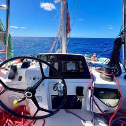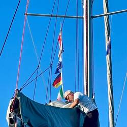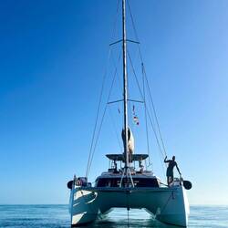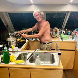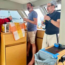 Das Reinigungsteam ist auch hier wieder beinahe ein Totalausfall: Weil wir am Anker und nicht in der Marina liegen, will der Putzer das Deck nicht reinigen und die Putzfrau wird vom Wellenschlag vorbeifahrender Schiffe seekrank.
