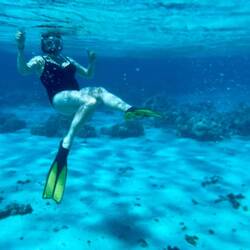 Wir vergnügen uns stundenlang im, am und über dem klaren, warmen und Türkis-farbenen Wasser.
