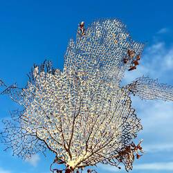 Es schwimmen farbenfrohe Fisschwärme und Korallen heften sich an Rumpf und Flügel.